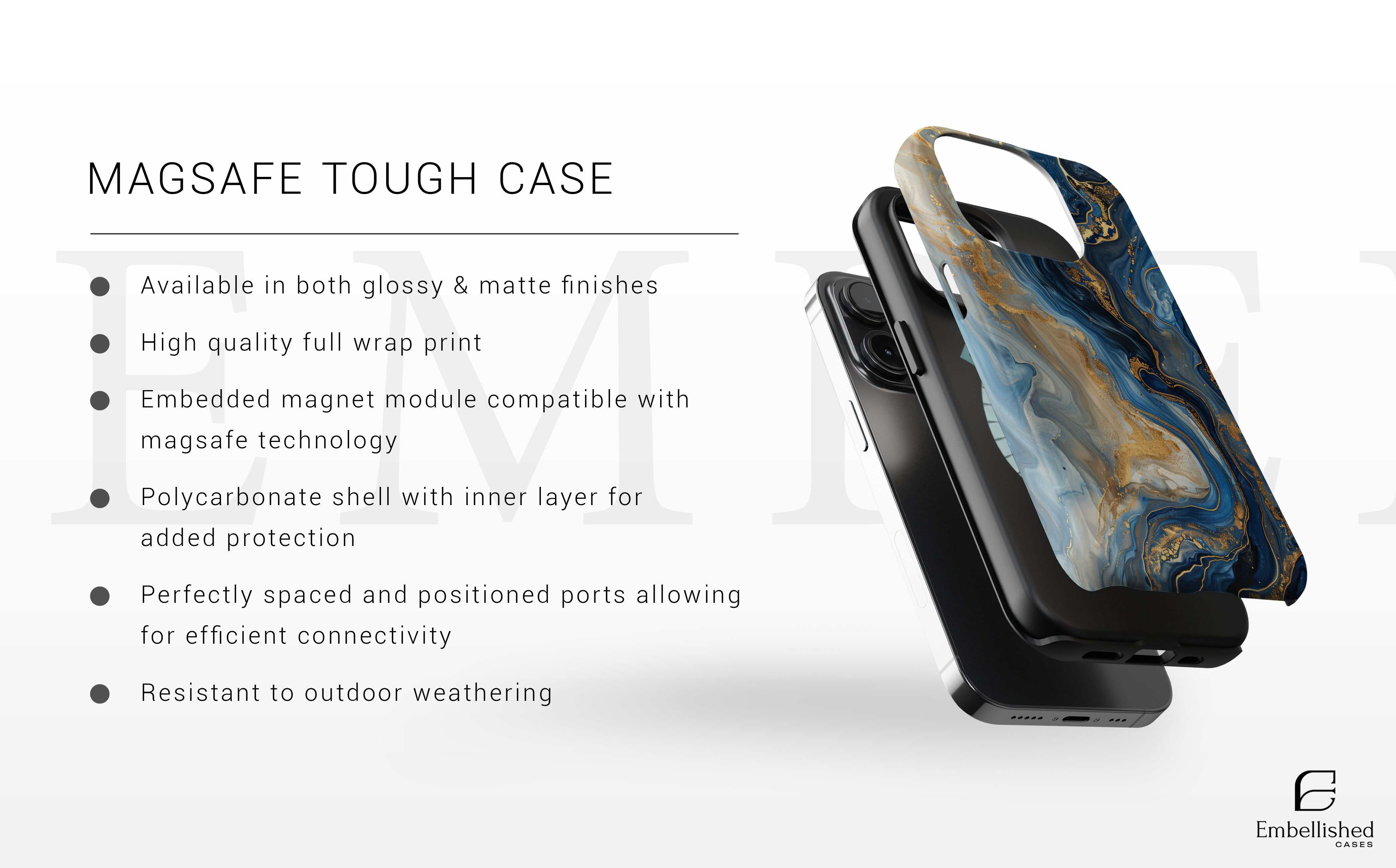Product features - Extremely strong Lexan plastic material - Lay-flat bezel for screen protection - Flexible rubber liner for shock absorption - Glossy finish for full color decoration - UV protected for outdoor durability