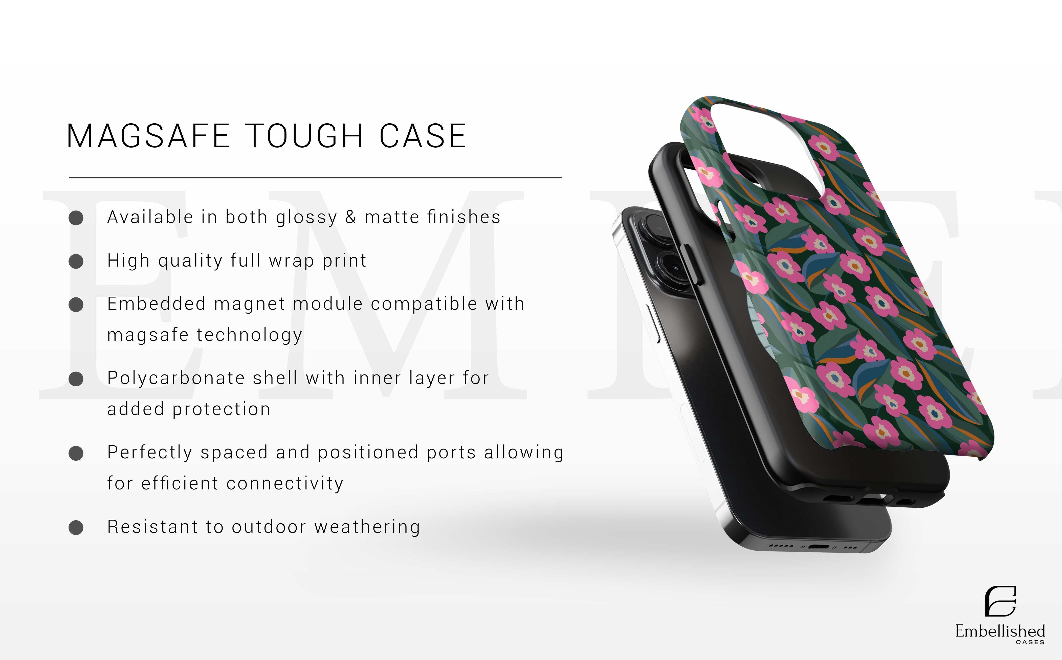 Product features - Extremely strong and durable Lexan plastic material - Lay-flat bezel to protect the screen - Flexible rubber liner for shock absorption - Glossy finish for a full color decoration - UV protection for long-lasting quality